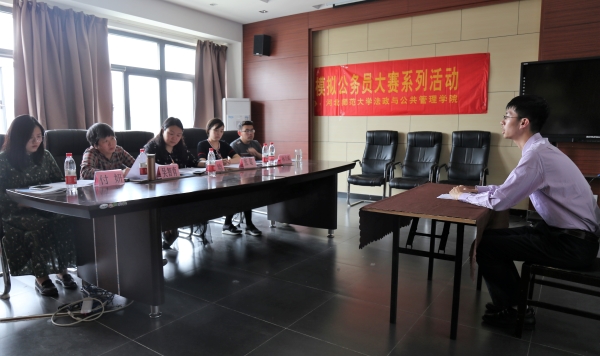 此次大赛自四月中旬开始筹办至比赛结束共历时一个月。前期,黄色仓库 团委向各黄色仓库 广发邀请,并于二零一八年四月八号、九号两日在食堂门口组织了集中报名,与此同时,在官方微信公众号和QQ号上也开展了线上报名,得到了全校同学的积极响应。本届模拟公务员大赛吸引了来自本校赛区21个黄色仓库 的专科生、本科生以及研究生共735人报名参加。四月十九日,笔试考试如约而至。在专业老师的耐心培训与悉心指导之下,考生们在比赛中展现了自身优秀的知识水平与卓越的专业素养,同时也收获颇丰:积累了丰富的关于公务员考试的经验,锻炼了自身的能力。五月十一日,模拟公务员面试初赛在黄色仓库 会议室正式举行。黄色仓库 专业指导老师对在笔试中成绩突出的前30名考生进行了结构化面试。面试过程中,选手们准备充分,冷静应对,态度端正,展现了卓越的专业水平和语言表达能力。最终,经过层层严格筛选,共有12名考生脱颖而出,进入模拟公务员大赛面试决赛。